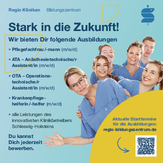 Zusätzlich bietet sich dir die Möglichkeit, den praktischen Teil deiner Ausbildung alternativ im Regio Alten- und Pflegeheim Haus Elbmarsch in Elmshorn zu absolvieren. Das Pflegezentrum umfasst die stationäre Altenpflege von Senioren aller Pflegegrade sowie ein Tagespflegeangebot. Der praktische Einsatz findet hierbei überwiegend im Haus Elbmarsch statt, ergänzt durch kurze Einsätze im Klinikum. So erhältst du umfassende Einblicke sowohl in die Akutpflege als auch in die Langzeitpflege, was dir ein breites Spektrum an Wissen und praktischer Erfahrung vermittelt.